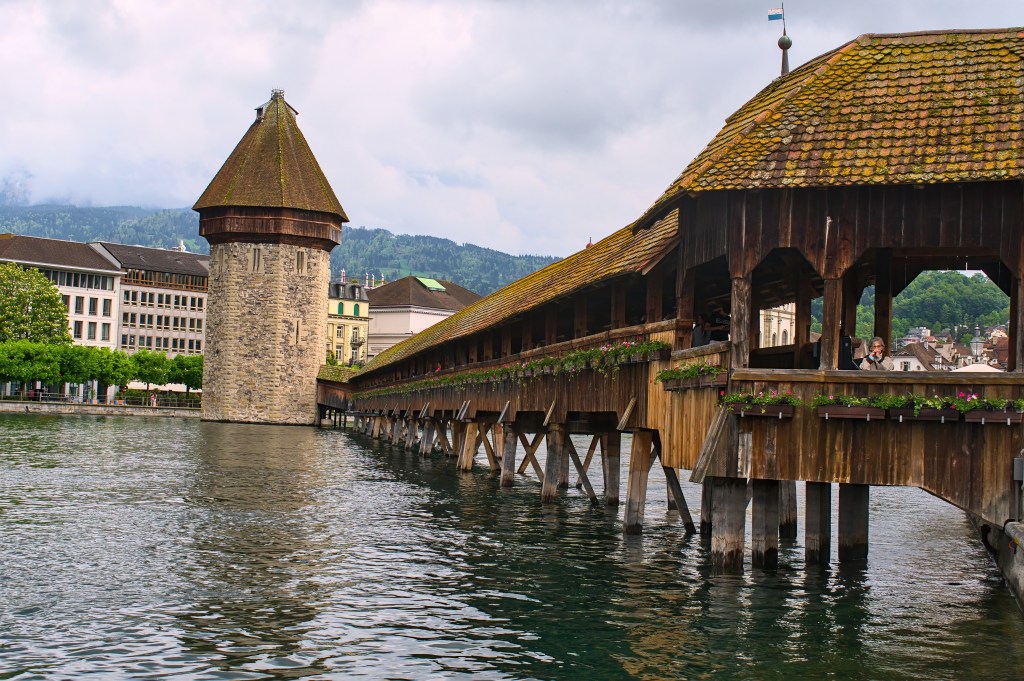 Our Swiss voyage started in Lucerne with the glimpse of the charming Lake Lucerne and the iconic Chapel Bridge , a covered wooden bridge with a tower that dates back to the 14th century.