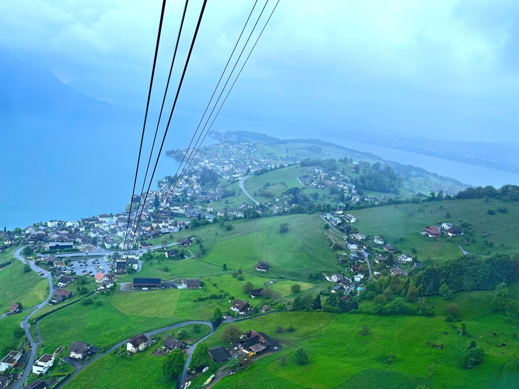 Our next day was a trip to the queens of the mountains Mt Rigi, There are multiple routes to reach there but we opted for a boat ride to a beautiful picturesque village of Vitznau, then  taking the cogwheel train from Rigi Bahn right up to the summit, Due to overcast conditions although the atmosphere was serene and heavenly we missed out on the wonderful scenic ride up as well as the panoramic views from the top. The return journey we opted for the cable car ride from Rigi kaltbad to Weggis The spectacle of the lake view from above while descending will mesmerize you.