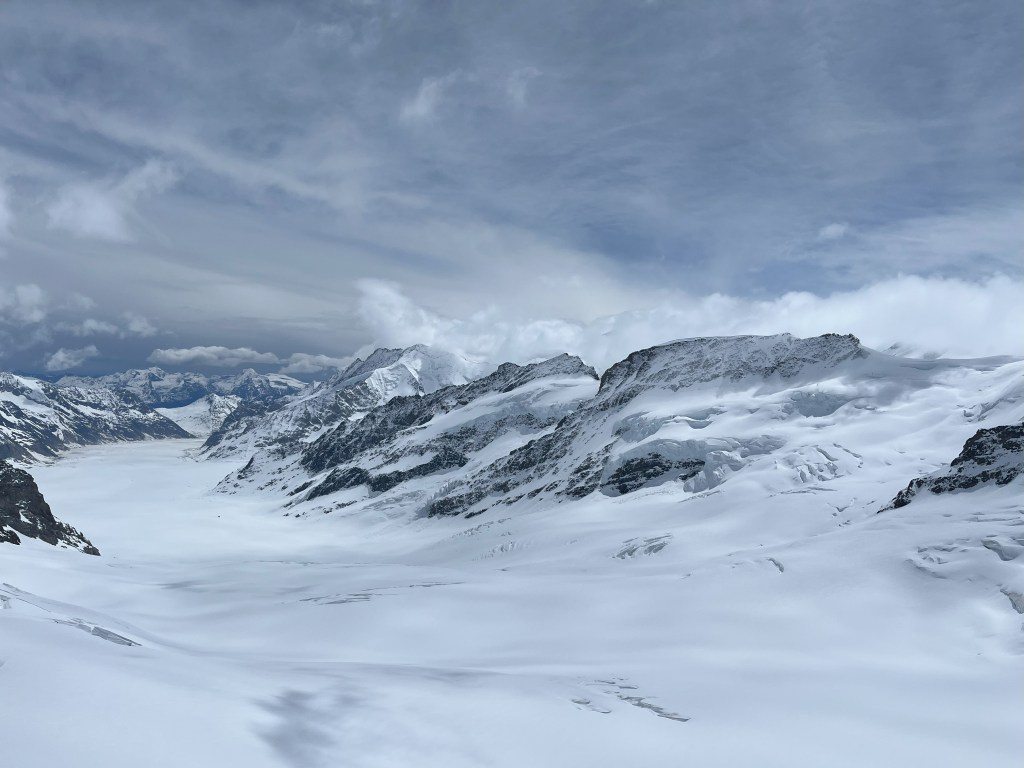 Our original plan was to proceed to Grindelwald first where we had planned to enjoy the adventure sports, but the overcast conditions meant we modified our plans  to proceed to the top of Europe ,Junfrou from Grindelwald. There are two routes available, one through Grindelwald and the other through Lauterbrunnen. While returning, we took the route via Lauterbrunnen. It’s important to note that the Swiss Pass doesn’t cover the last leg of the journey to reach the top , but it does offer a 50% discount, so you need to buy the tickets separately.